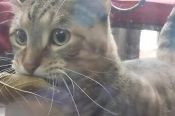 Cada mañana, el gato llega a nuestra pequeña tienda de pescado. Gris, callejero, pero con