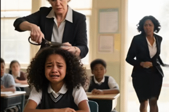 La maestra, al ver el largo cabello de la alumna, tomó unas tijeras y se lo cortó. Pero cuando la madre