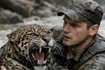 Durante la operación especial en la selva, el soldado notó abajo un río furioso. El agua corría con tal