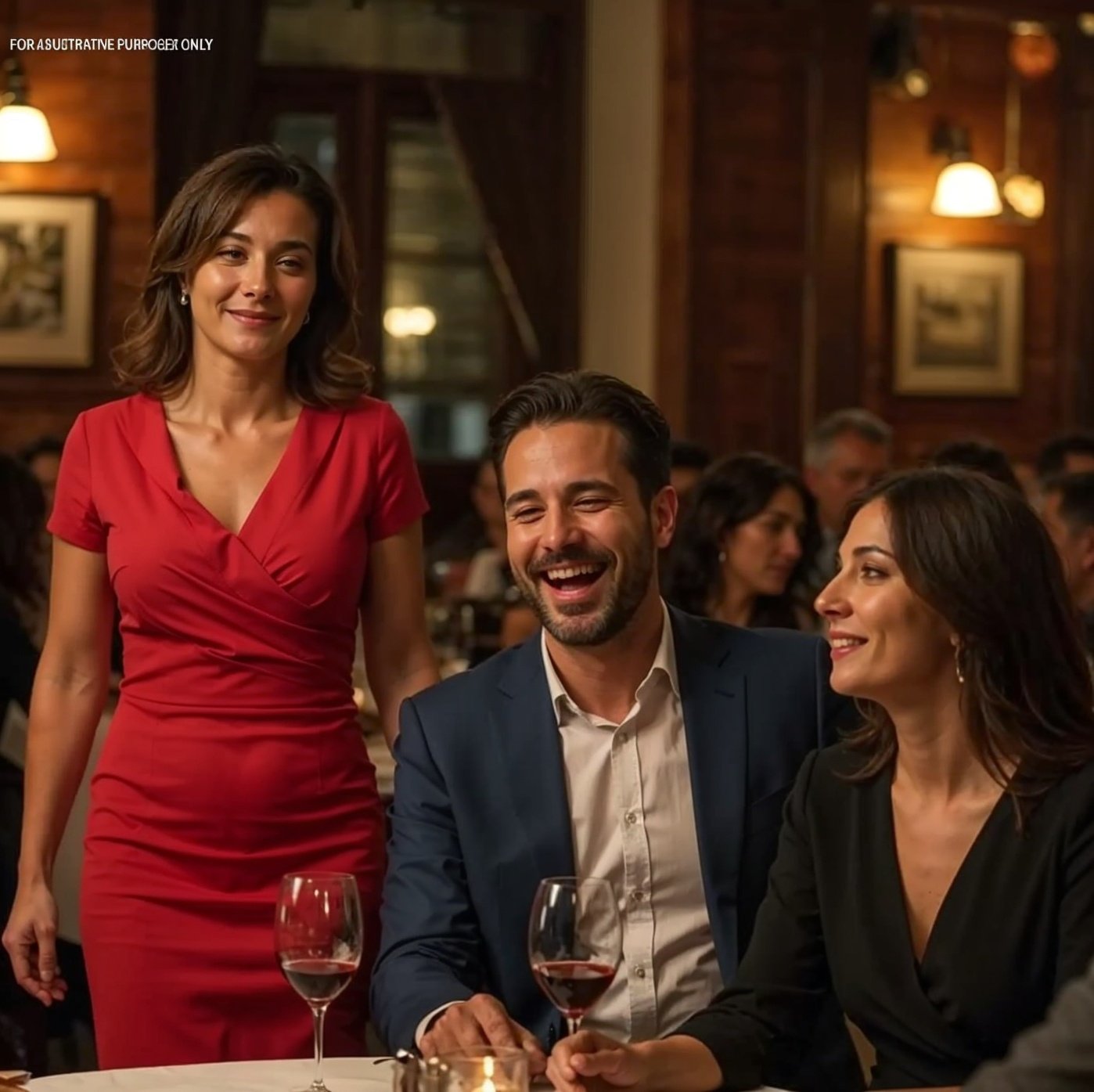 “El hombre del blazer burdeos, mi esposo. Me gustaría pagarles la cena. Pero, por favor, no se lo diga.”