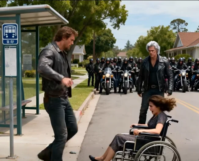 Ben retrocedió un paso, sintiendo por primera vez el peso de todas esas miradas fijas en él. Su risa burlona se desvaneció, reemplazada por una tensión opresiva. Los ciclistas permanecieron inmóviles, sus ruedas formando una barrera silenciosa pero imponente.