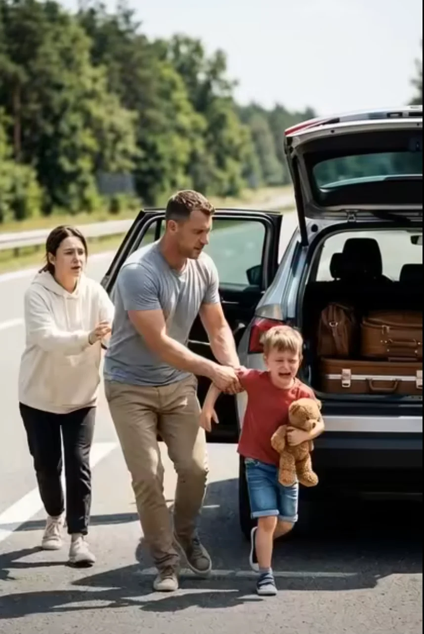 Tropecé sobre la grava; el calor de la autopista me golpeó como un puñetazo. Antes de que pudiera enderezarme, David ya estaba en la puerta trasera. La arrancó, soltó el asiento de Leo con manos temblorosas y prácticamente volcó a nuestro hijo, llorando, sobre el asfalto caliente junto a mí.
