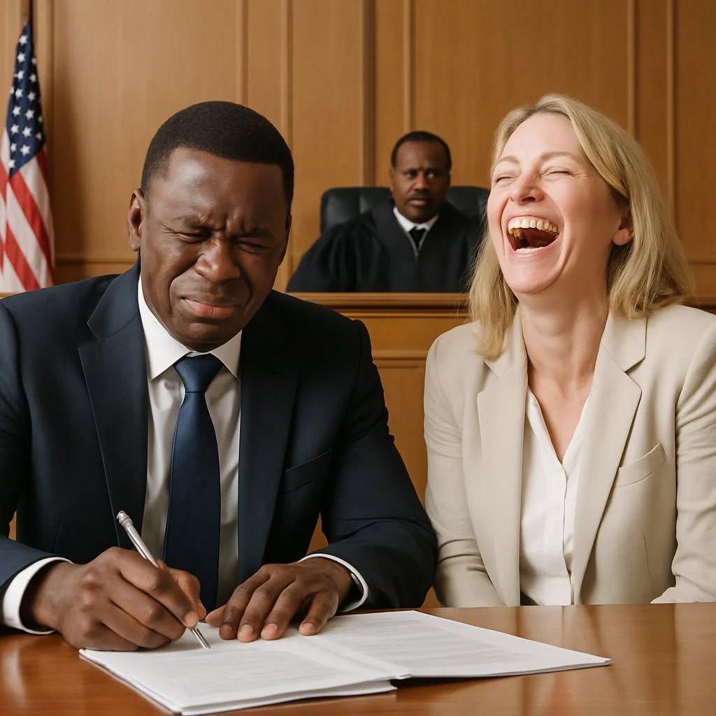 Llegó el día del divorcio. Ambos estaban sentados frente a frente en el tribunal.