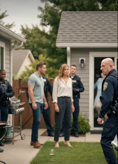 Salí hacia la puerta lateral. Los sonidos normales de la barbacoa se desvanecieron detrás de mí. Al llegar a la calle, vi la primera patrulla doblar la esquina, luces encendidas pero sin sirena. Luego otra. Y otra. En minutos, la calle perfecta de Amanda parecía una escena de película. Oficiales con chalecos tácticos descendían, radios crepitando.