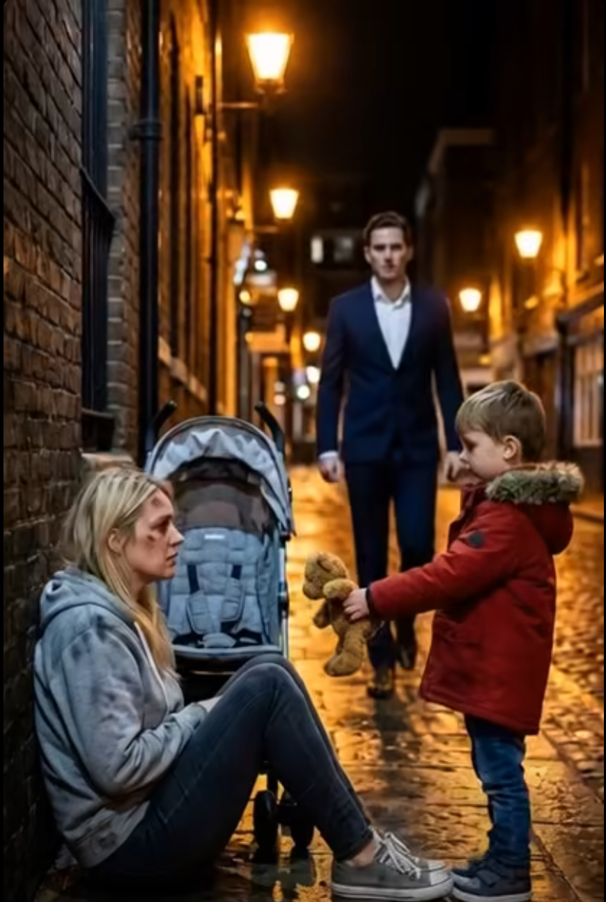 A la mañana siguiente, el viento era cruel. La ciudad seguía su ritmo indiferente, pero Brian condujo hacia aquella calle gris como si una fuerza más fuerte que la vergüenza lo empujara. La vio en la misma zona, sentada junto a una pared llena de grafitis, junto al cochecito viejo. Su abrigo seguía siendo demasiado grande. Su cabello, apagado en la luz anaranjada. Sostenía el oso de peluche como si fuera un bebé. Y entonces hizo un gesto que quebró algo dentro de él: alisó el pelaje del peluche con la misma caricia con la que Donna acomodaba el flequillo de Leo cuando se dormía en su regazo.