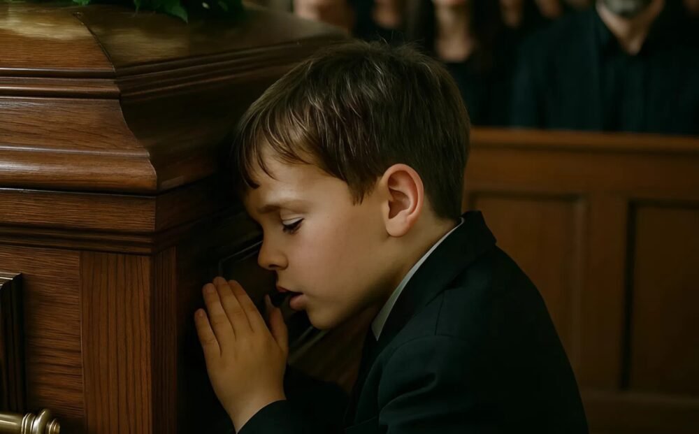 Colocó la oreja contra el ataúd, algunos momentos pasaron en un silencio pesado, luego susurró: «Mamá, voy a ser valiente, y cuidaré de papá también. Lo prometo.»