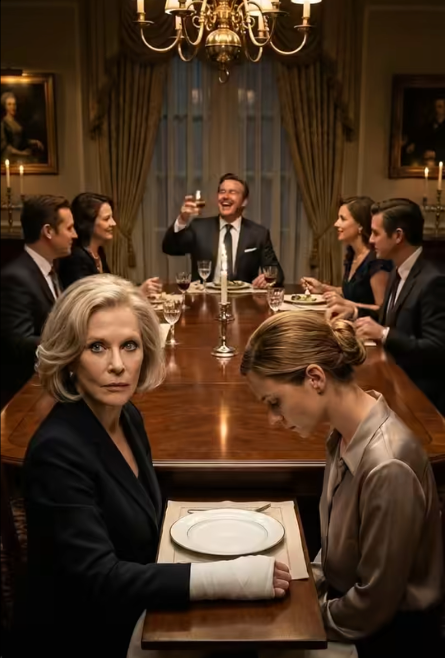 En la cena familiar, tomé asiento con el brazo enyesado.Mi hija dijo con calma:—“Mi esposo le dio una lección.”Mi yerno sonrió con orgullo.Yo también sonreí…Porque treinta minutos después, sonó el timbre de la puerta…y todo cambió.
