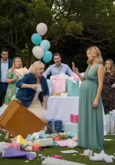 En un estallido de violencia, se lanzó hacia la mesa de regalos. De un manotazo, envió obsequios, tarjetas y mantas tejidas cayendo sobre el césped. Los invitados exclamaron y se apartaron sobresaltados. No estaba solo enfadada; estaba fuera de sí.