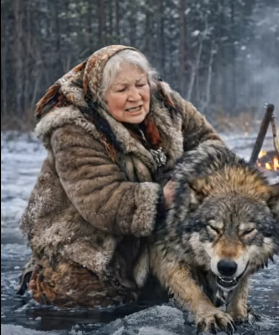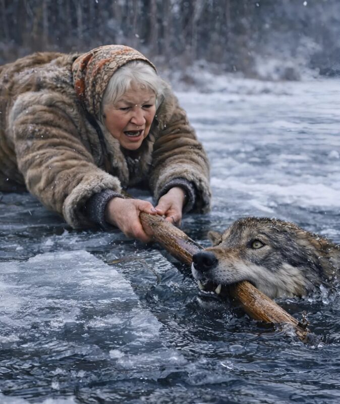 Al principio, el lobo mostró los dientes, pero ya no tenía fuerzas para la agresión. Sujetó la rama con sus patas delanteras. La mujer tiró. Sus manos temblaban, la espalda le dolía, pero no soltó. El hielo volvió a crujir, el agua salpicó por el borde y, finalmente, el pesado cuerpo del lobo quedó sobre la superficie.