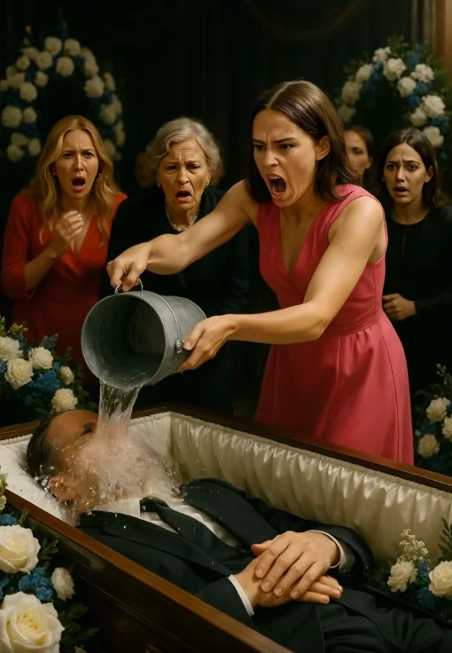 Sin advertir a nadie, se arrodilló junto al ataúd y, con una mirada decidida, vertió el contenido del balde sobre el rostro de Daniel.