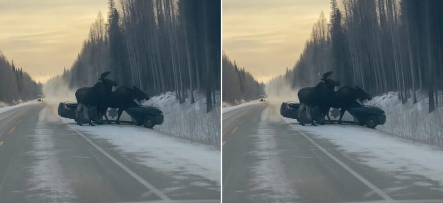 En el arcén había un coche de policía, y a su alrededor — enormes ciervos. No solo golpeaban el capó con sus pezuñas — embestían el coche con furia, como si intentaran entrar.