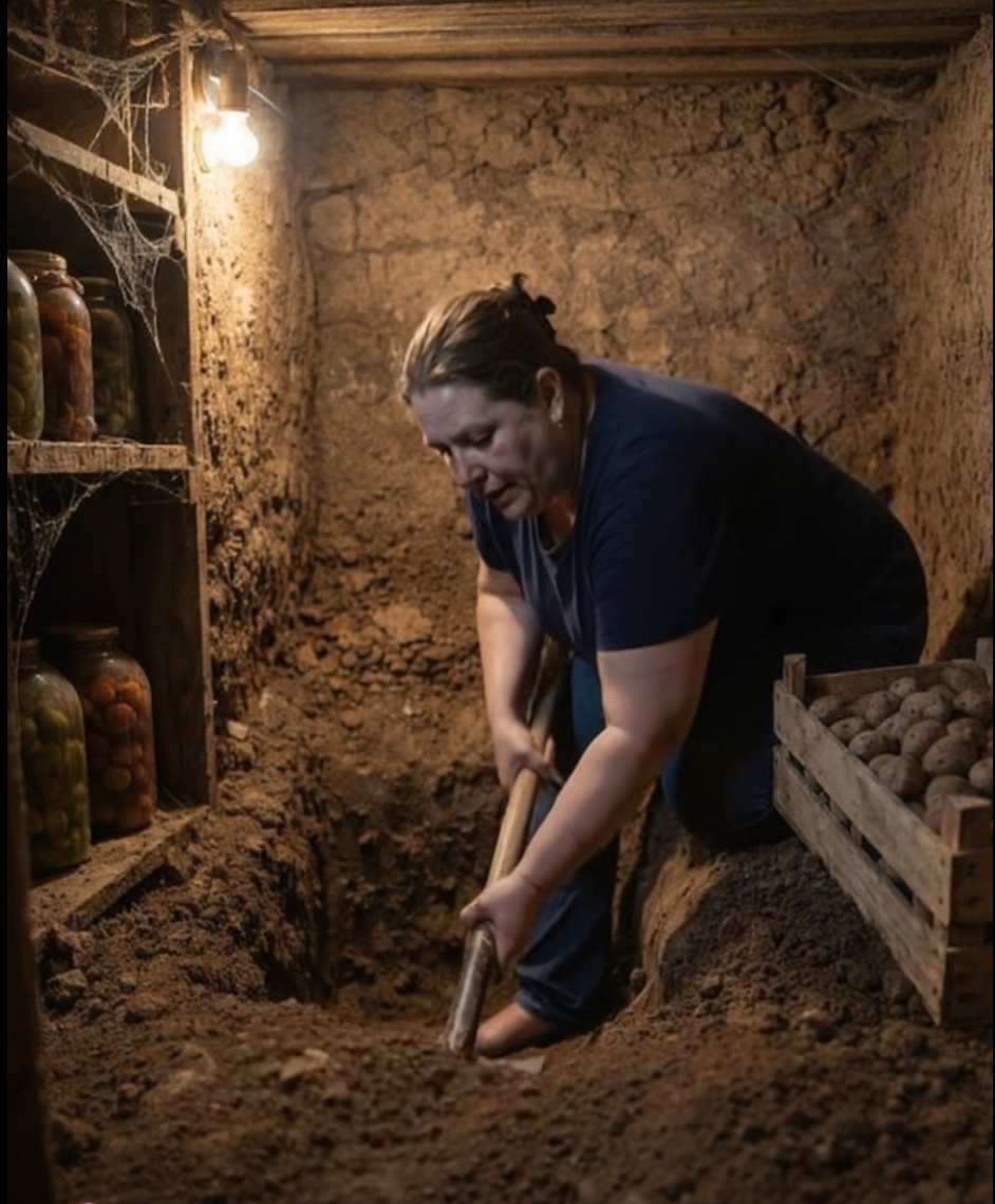 En la vieja cocina, todo estaba exactamente igual que muchos años atrás. Aparté la caja de papas, tomé una pala y comencé a cavar. A unos cincuenta centímetros de profundidad, la pala golpeó algo duro. Me arrodillé y empecé a apartar la tierra con las manos. En ese momento, un escalofrío recorrió todo mi cuerpo al darme cuenta de que mi suegra había estado escondiendo algo allí durante más de treinta años.
