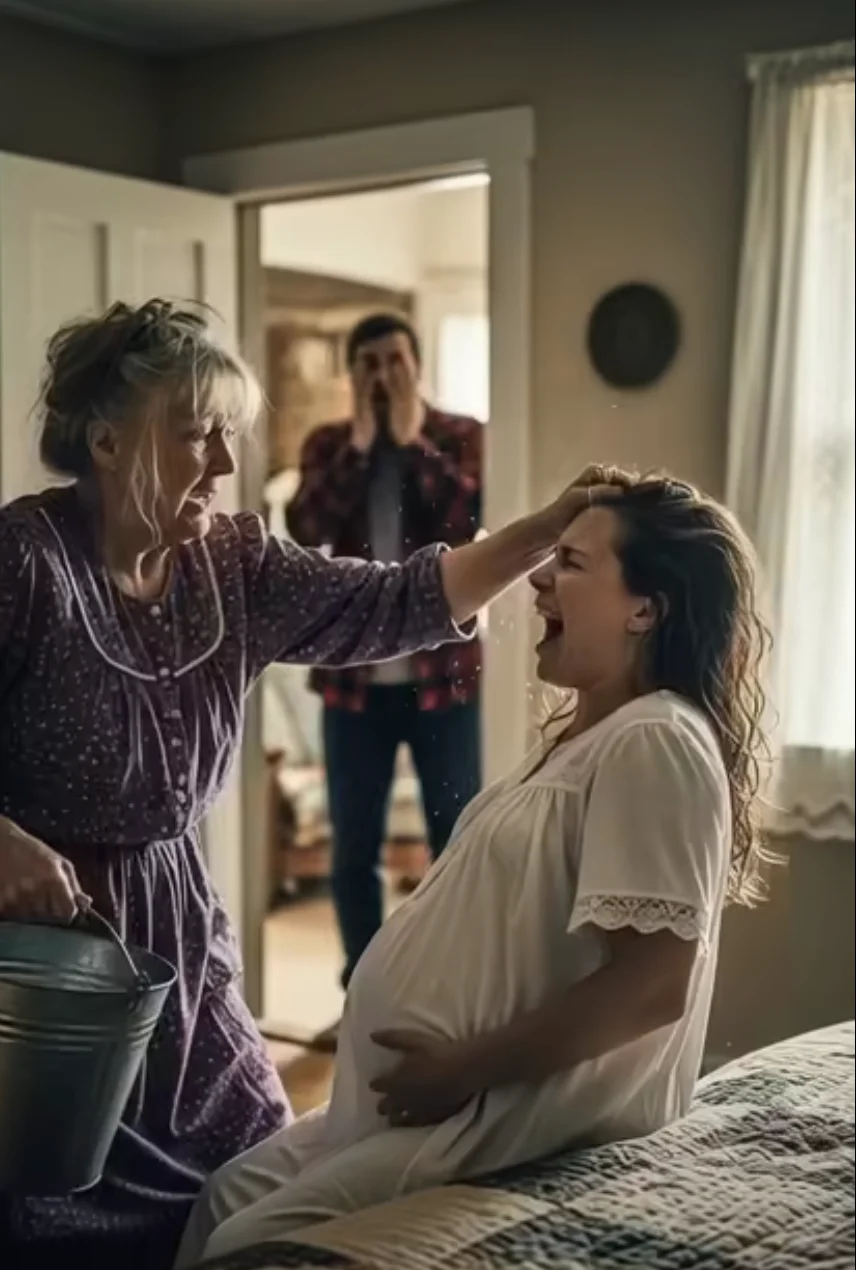 La puerta se abrió de golpe. Mi esposo, Ryan, entró con los ojos muy abiertos. Vio la cama empapada, el charco expandiéndose sobre el suelo de madera y a su madre con el “arma” en la mano.