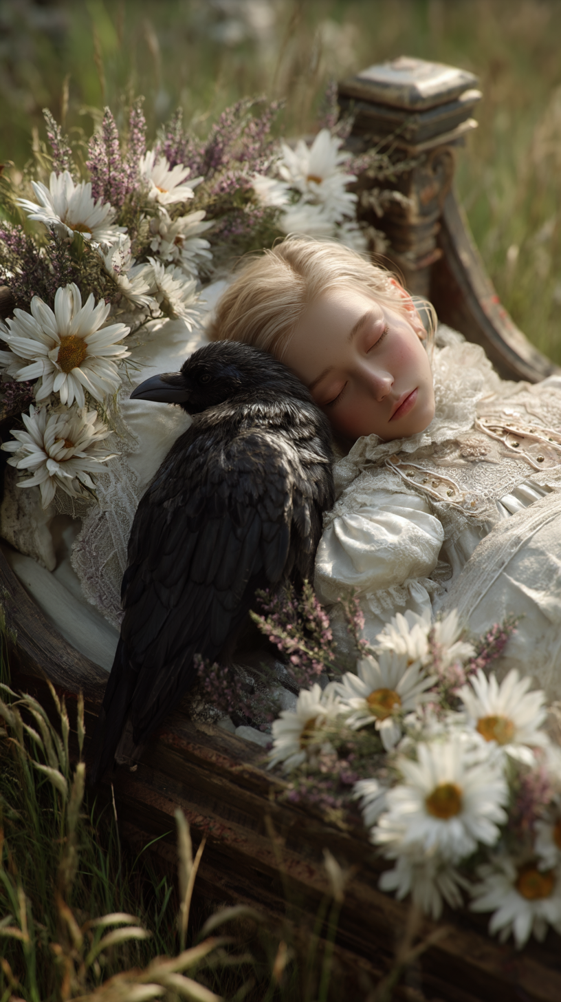 El cuervo croó de nuevo. Esta vez, no un nombre, solo un grito crudo, resonante. Aleteó una vez, dos veces, y dejó una pluma negra sobre el ataúd. Luego se quedó.