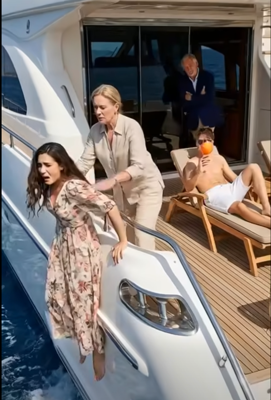 —Liam, cariño —dijo Victoria con voz arrastrada, girando un martini lleno casi solo de ginebra y condensación—. Dile a tu… amiga que los camarotes de la tripulación están abajo si necesita usar el baño. No queremos que se tape el de los invitados.